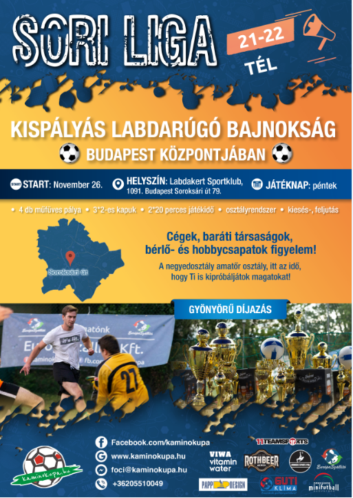 TUDTÁTOK? ITT ezen a pályán egy 44 csapatos 4 osztályos pénteki bajnokság is zajlik. A téli szezon – amikor a nagypályás foci úgyis megáll – november 26-án kezdődik. Gyertek ti is a télen a SORI LIGÁBA!!!
